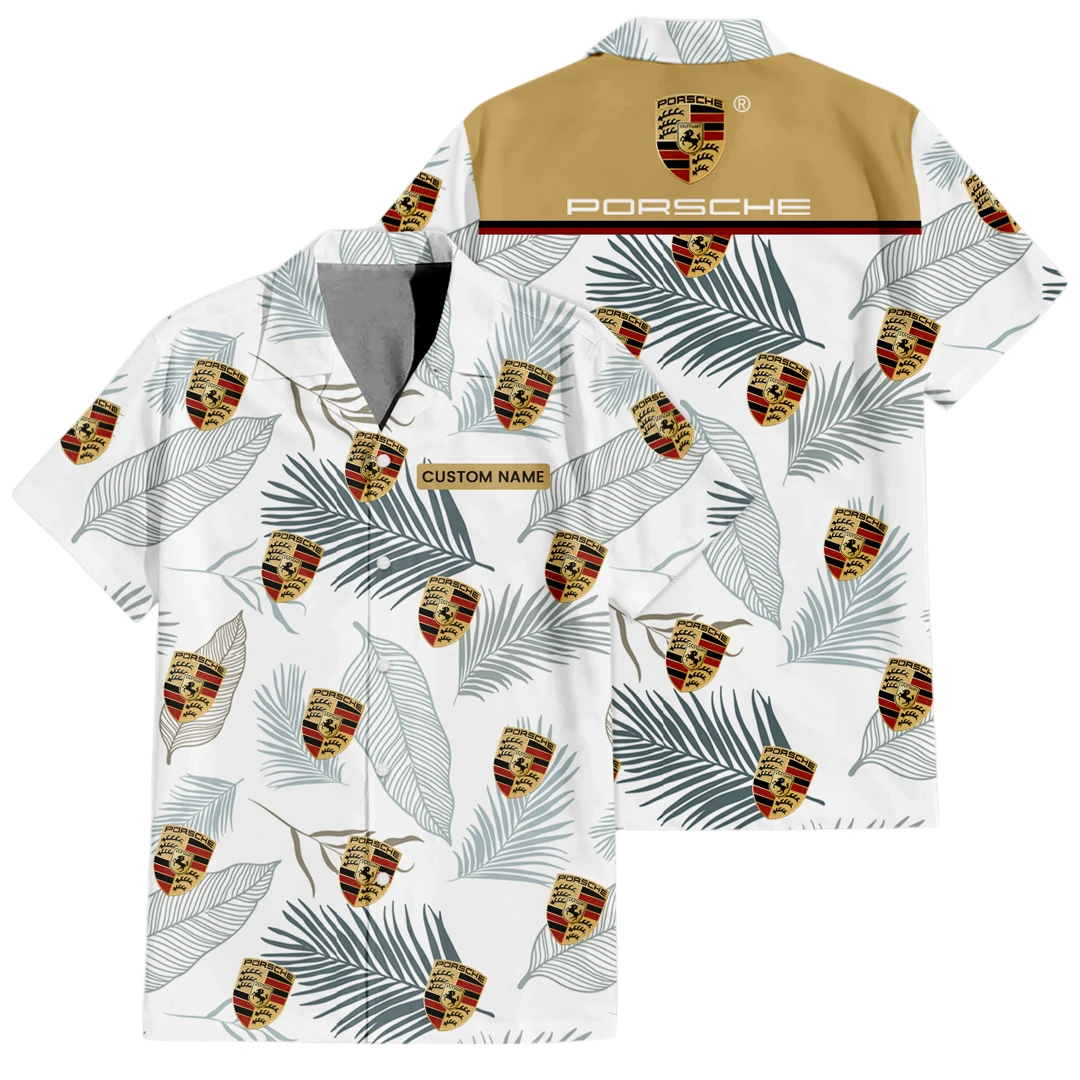 Porsche Hawaiian Shirt Tropical Leaves Seamless Pattern All-over Print Summer Gift For Lover Cars HIHI120125Y7HWLS1POR