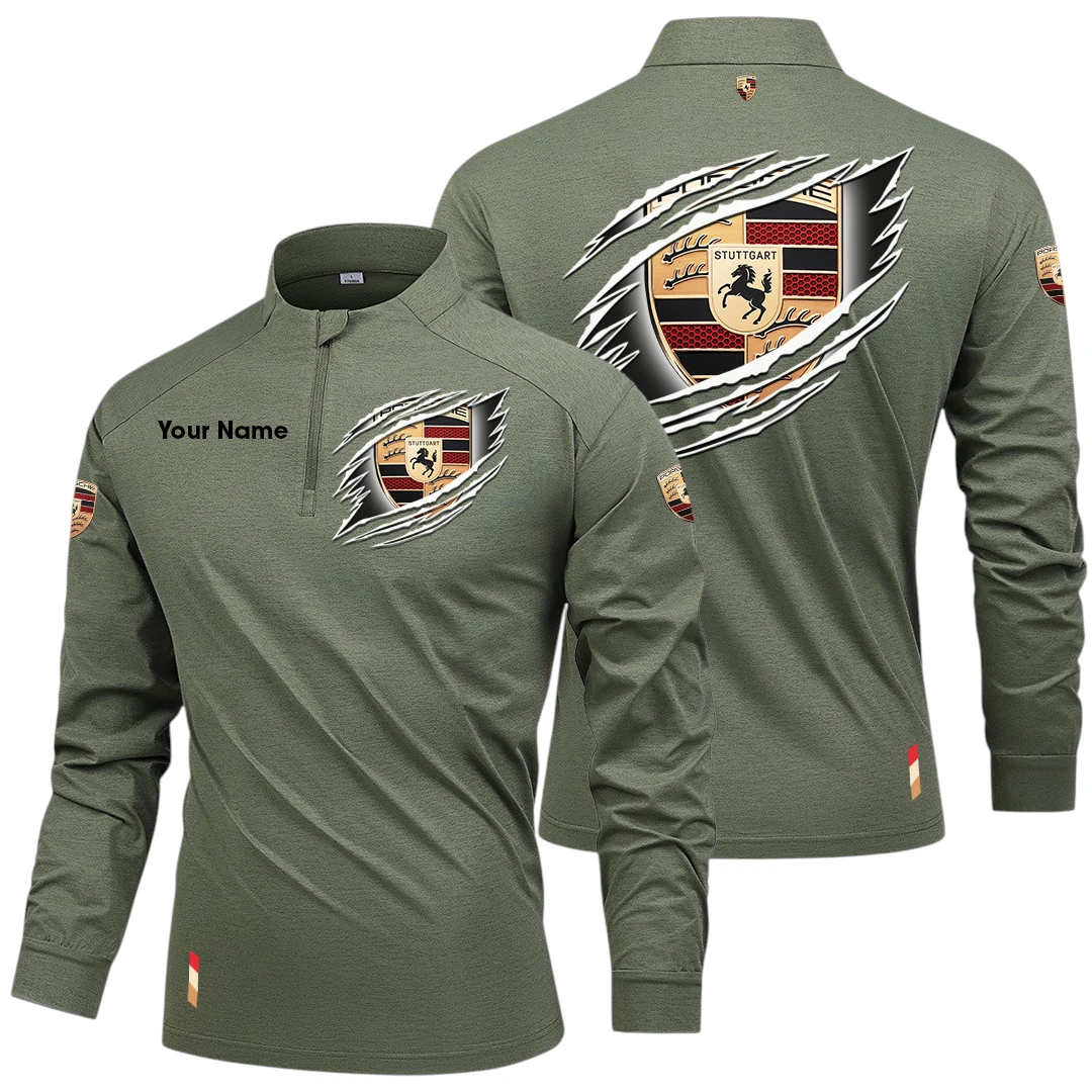 Porsche Long Sleeve Shirt, Stand Collar Quarter Zip-up Custom Name HIDI100525Y49LMT05POR
