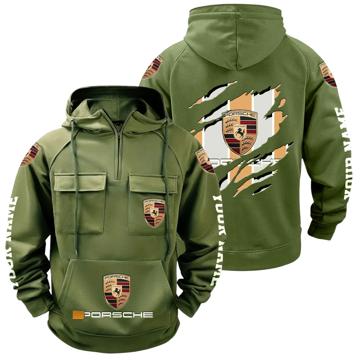 Porsche Quarter Zip Hoodie Multi-Pockets Custom Name