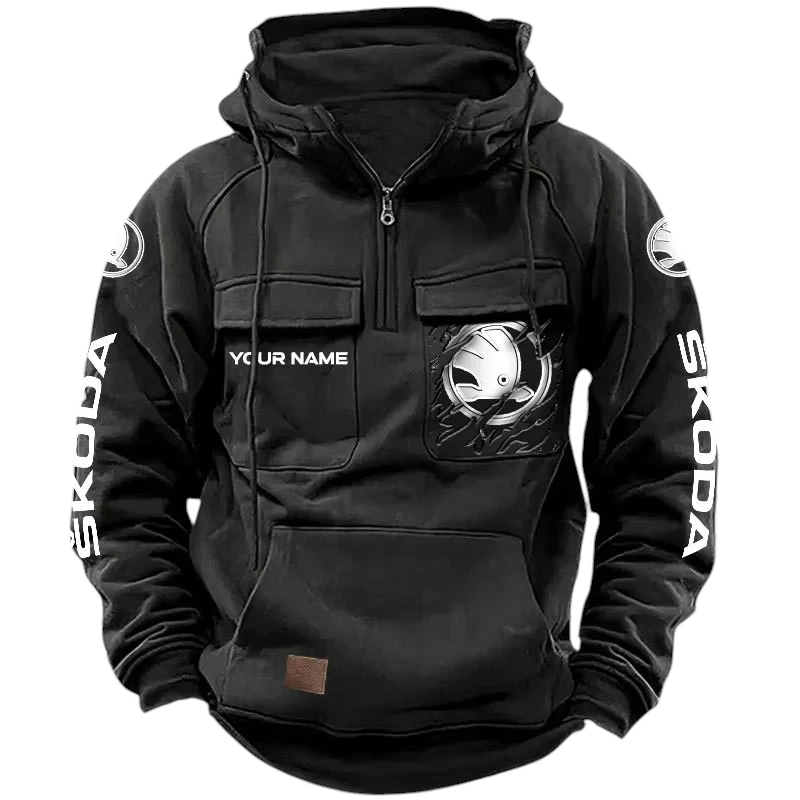 Skoda Quarter Zip Hoodie, Sports Hoodie Multi-Pockets, Custom Name HG290525Y41HJRCT1SKO
