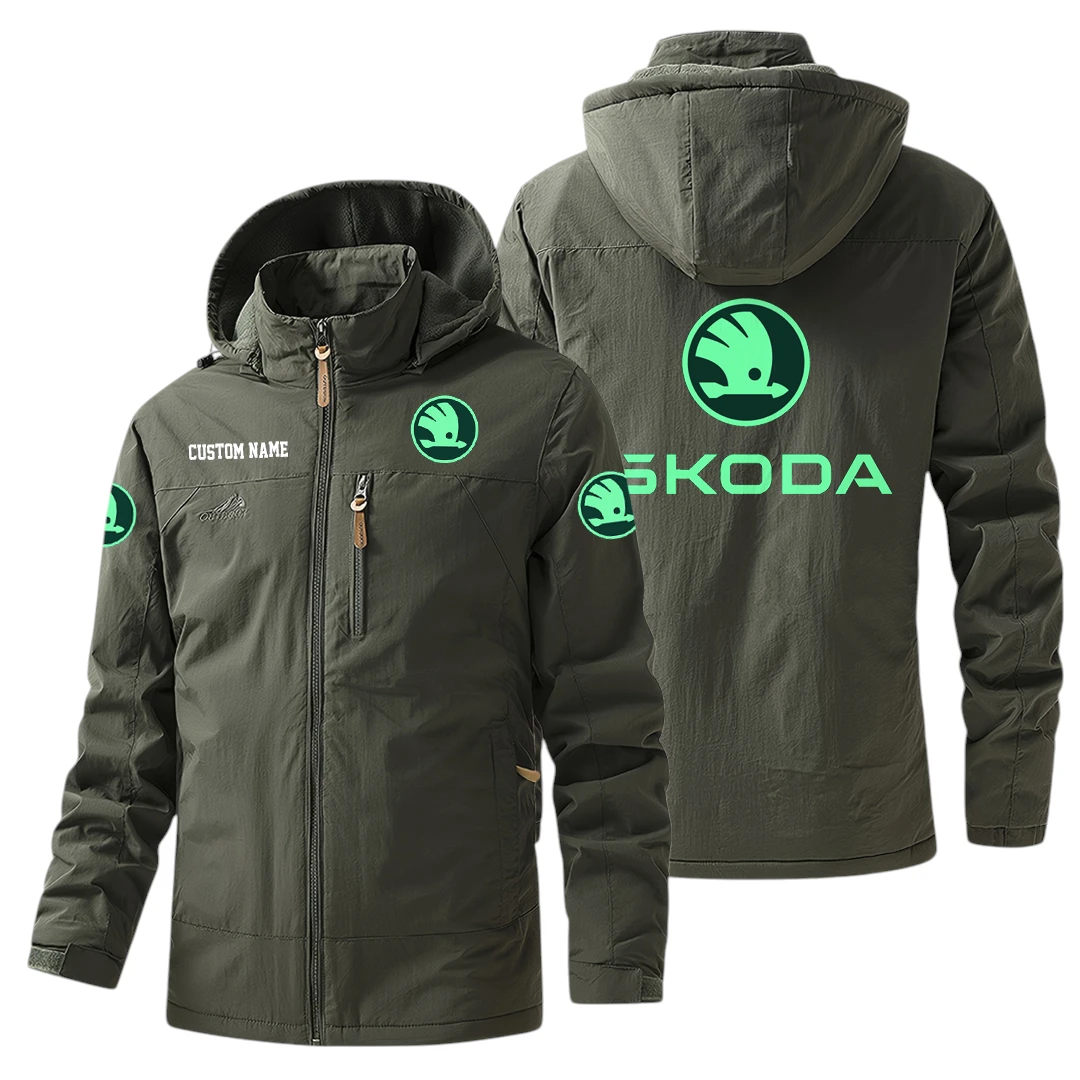 Skoda Windbreaker Jacket Hooded, Warm Lining Waterproof Outdoor Running Jacket For Men, Custom Name HIHI260225Y17WO88SKO