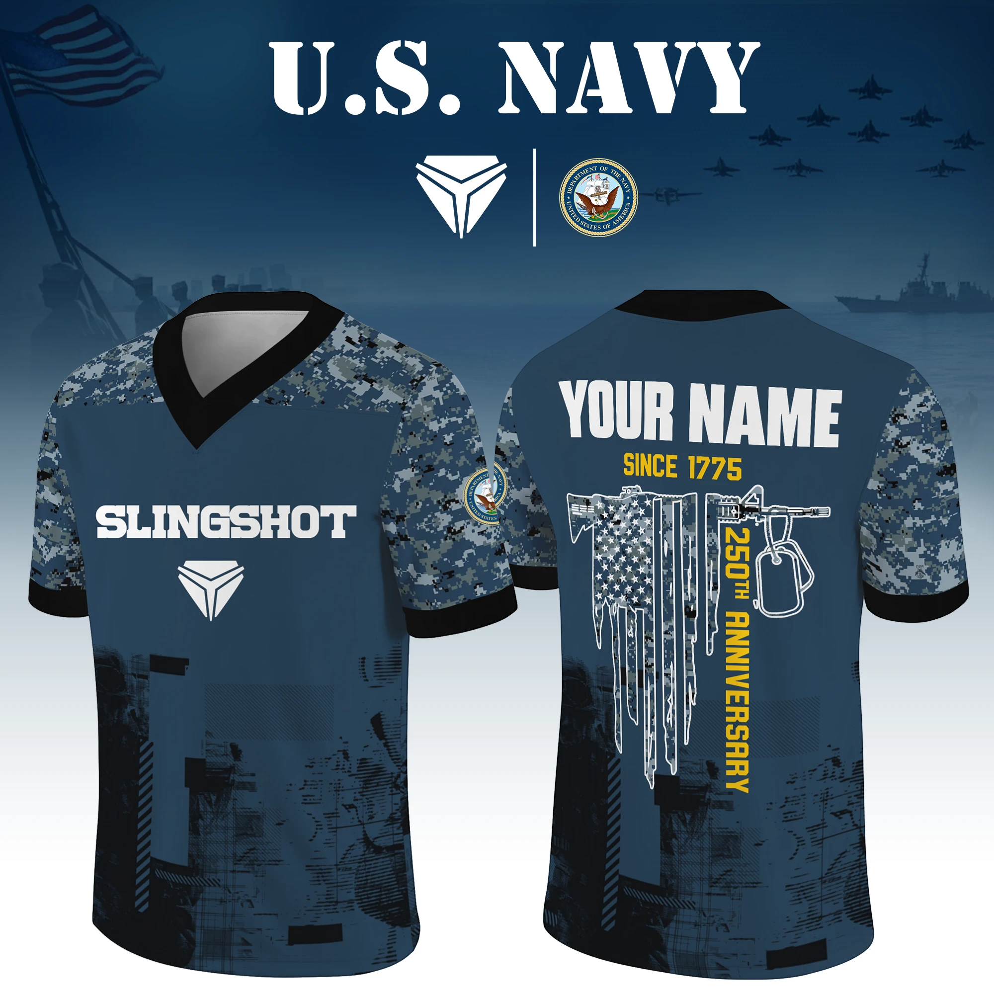 Slingshot x US Navy 250th Anniversary V-Neck Short Sleeve Jersey 3D Limited 2026 Custom Your Name