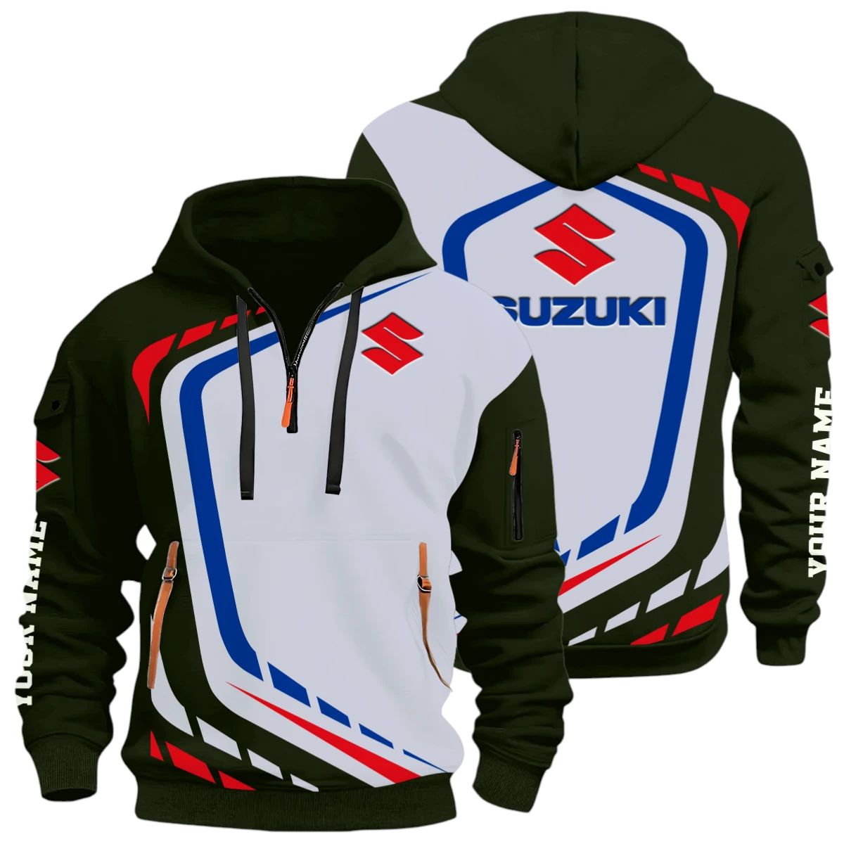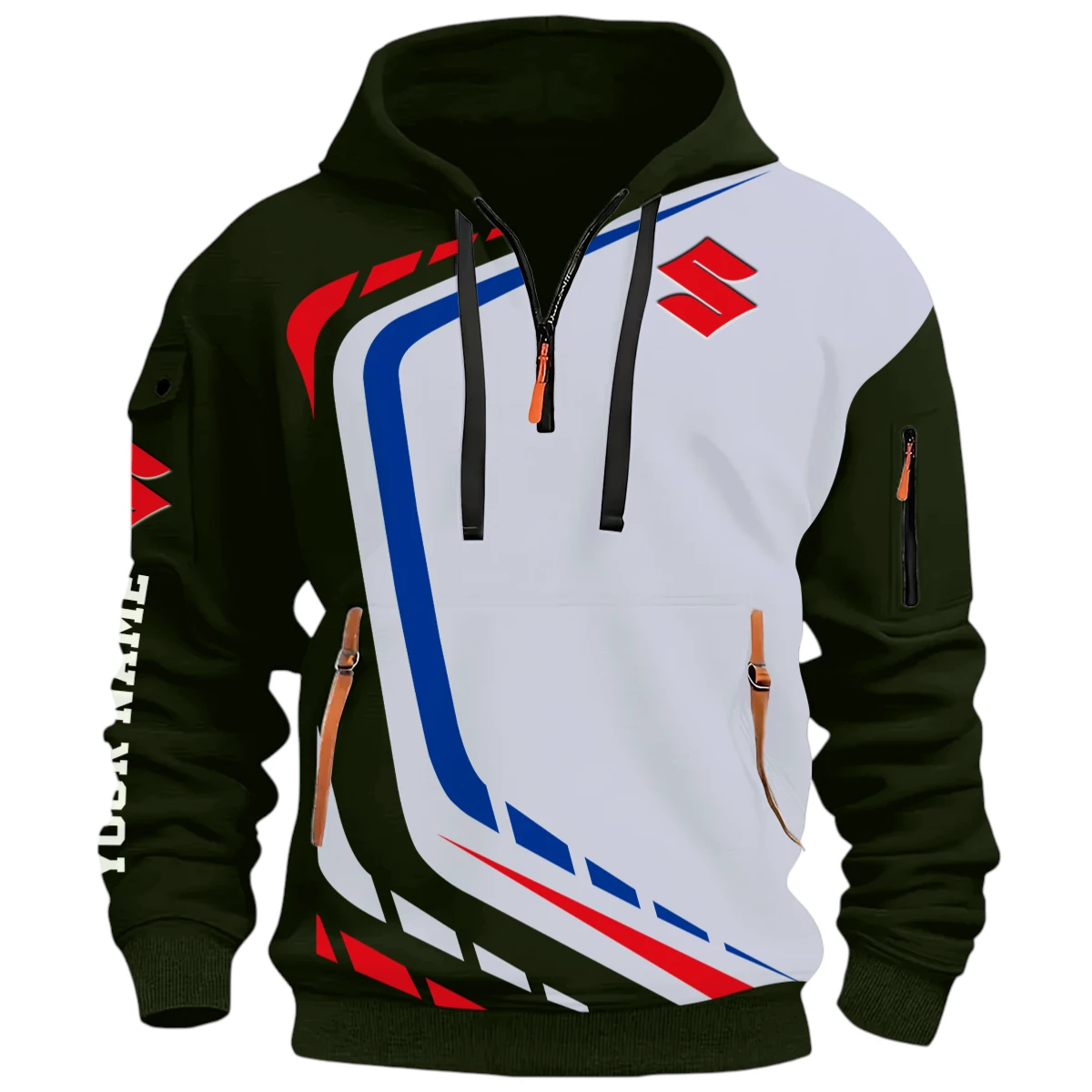 Sport Automobiles Half Zip Hoodie, Casual Hoodie Multi Pocket TFSY26QZ3H033 – Green – TEEFAVOS
