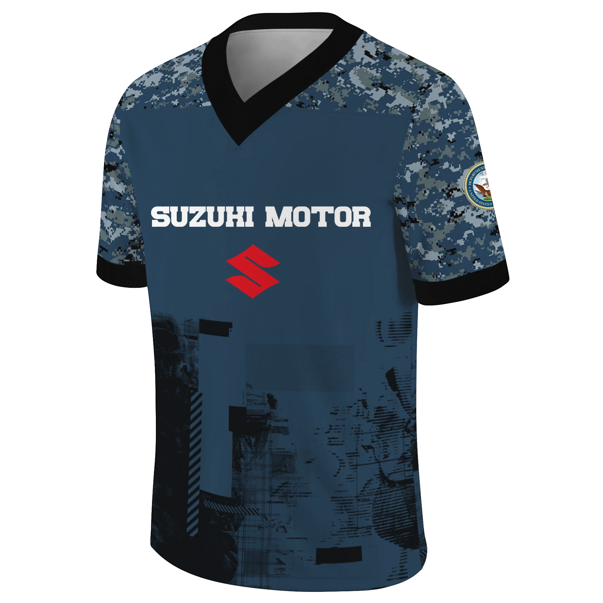 Suzuki Motor x US Navy 250th Anniversary V-Neck Short Sleeve Jersey 3D Limited 2026 Custom Your Name