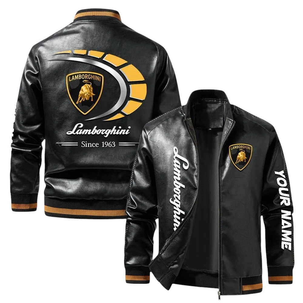 Vintage Lamborghini Exclusive Logo Jacket, Classic Ribbed Collar and Striped Cuffs, Custom Name TN21032025Y12LJ93CT2LAM