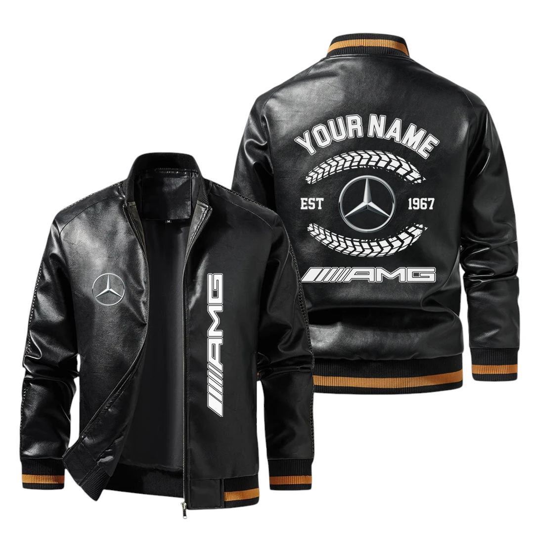 Vintage Mercedes AMG Exclusive Logo Jacket Est 1967, Classic Ribbed Collar and Striped Cuffs, Custom Name HIDI220225Y12LJ93AMG
