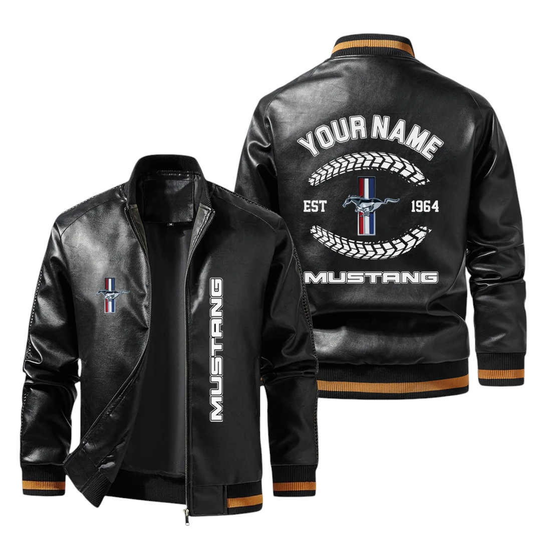 Vintage Mustang Exclusive Logo Jacket Est 1964, Classic Ribbed Collar and Striped Cuffs, Custom Name HIDI240225Y12LJ93MUS