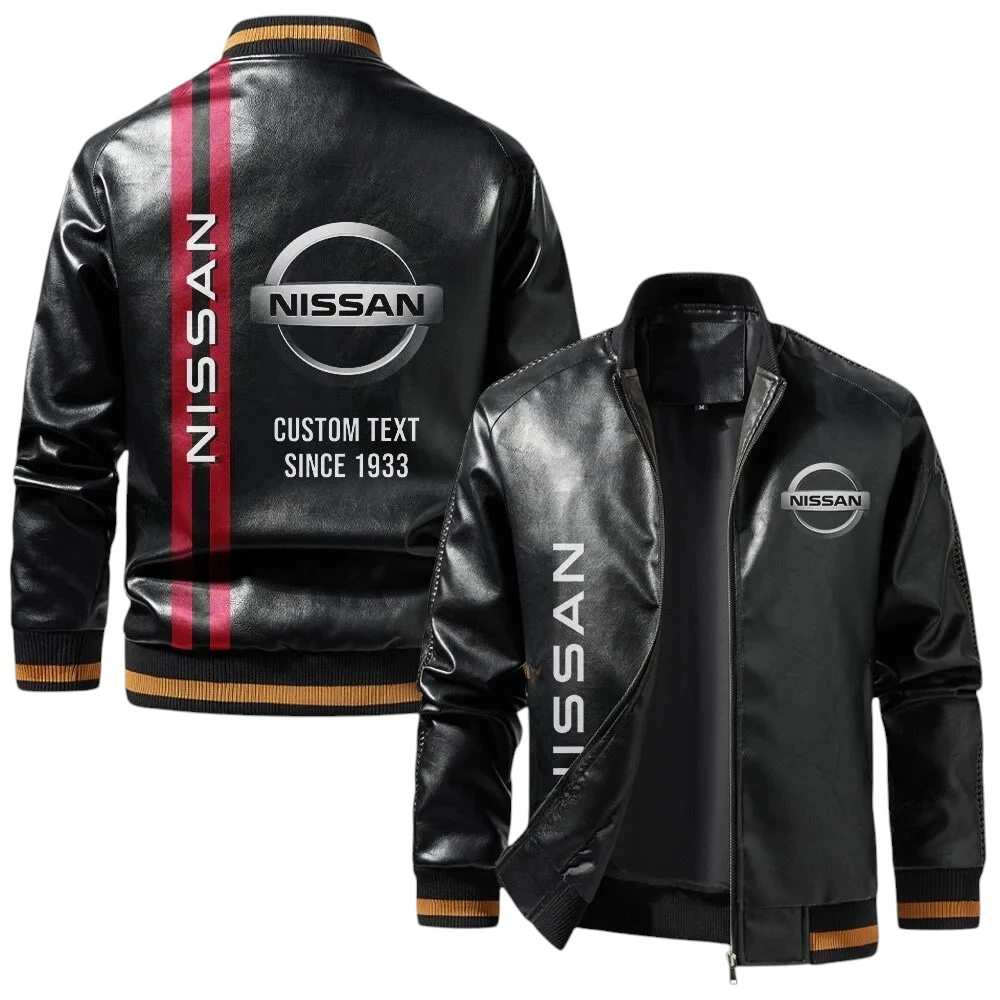 Vintage Nissan Exclusive Logo Jacket, Classic Ribbed Collar and Striped Cuffs, Custom Name TN01042025Y12LJ93CT2NIS