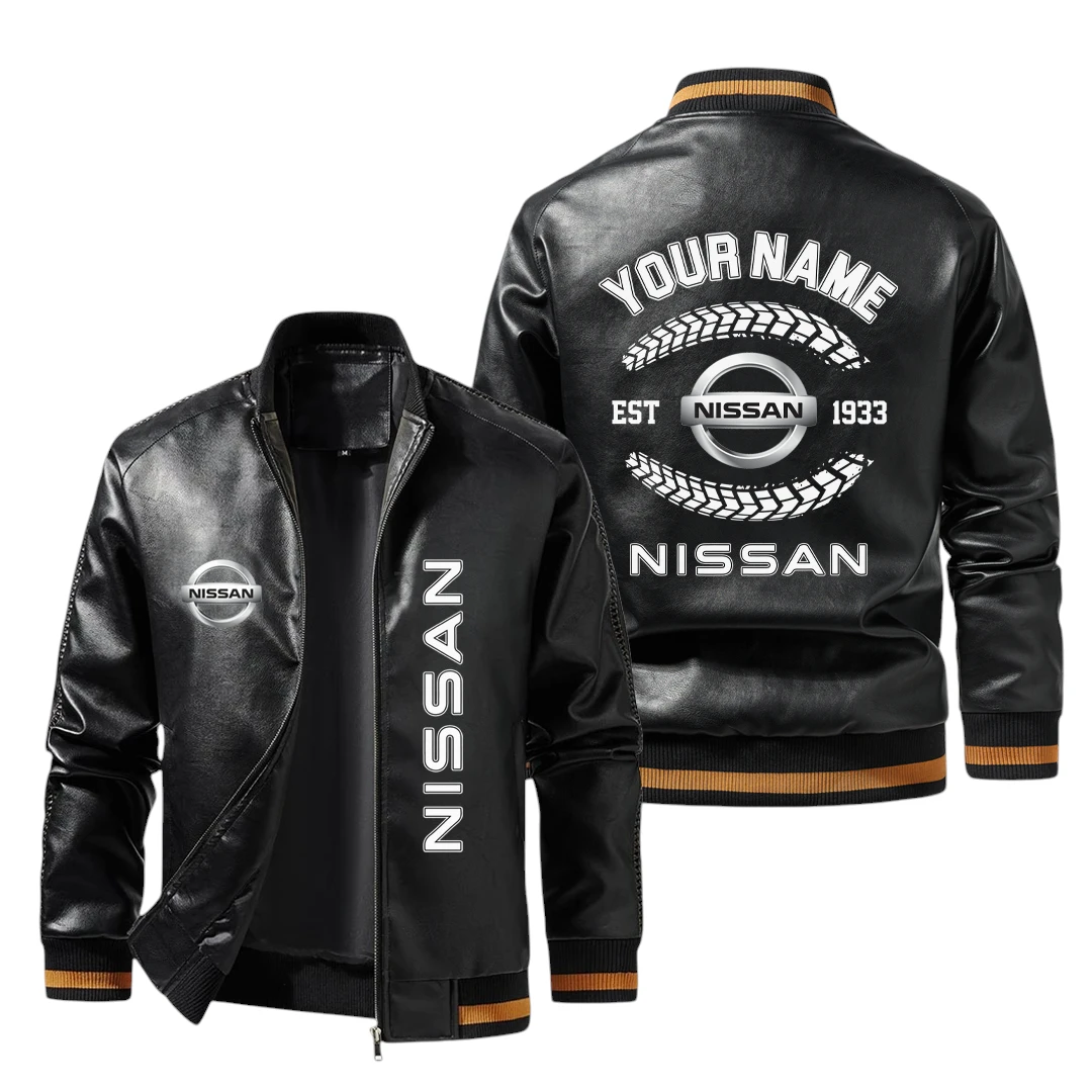 Vintage Nissan Exclusive Logo Jacket Est 1933, Classic Ribbed Collar and Striped Cuffs, Custom Name HIDI250225Y12LJ93NIS