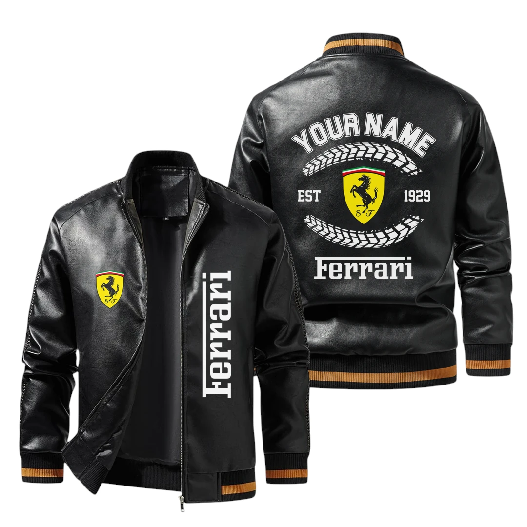 Vintage Scuderia Ferrari F1 Exclusive Logo Jacket Est 1929, Classic Ribbed Collar and Striped Cuffs, Custom Name HIDI270225Y12LJ93SF1