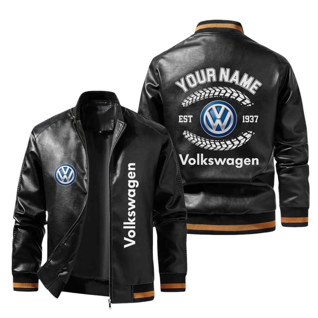Vintage Volkswagen Exclusive Logo Jacket Est 1937, Classic Ribbed Collar and Striped Cuffs, Custom Name HIDI260225Y12LJ93VOL