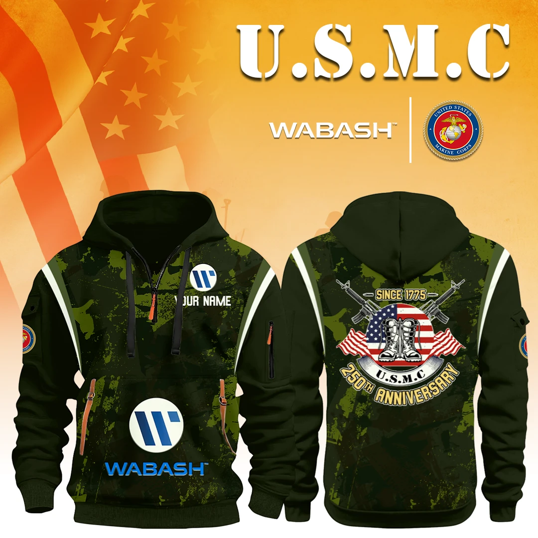 Wabash x USMC 250th Anniversary 3D Half Zip Hoodie Custom Your Name