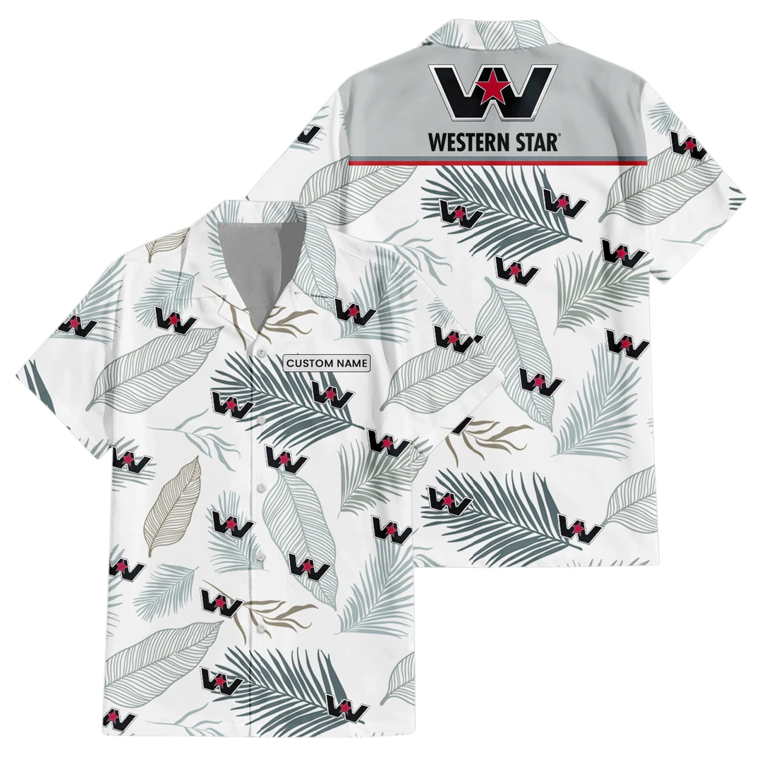 Western Star Exclusive Logo Button Up Hawaiian Shirt Tropical Leaves Seamless Pattern All-over Print, Custom Name HIHI190225Y7HWLS1WES
