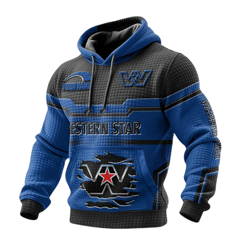 Western Star Waffle Pullover Hoodie 3D Custom Your Name