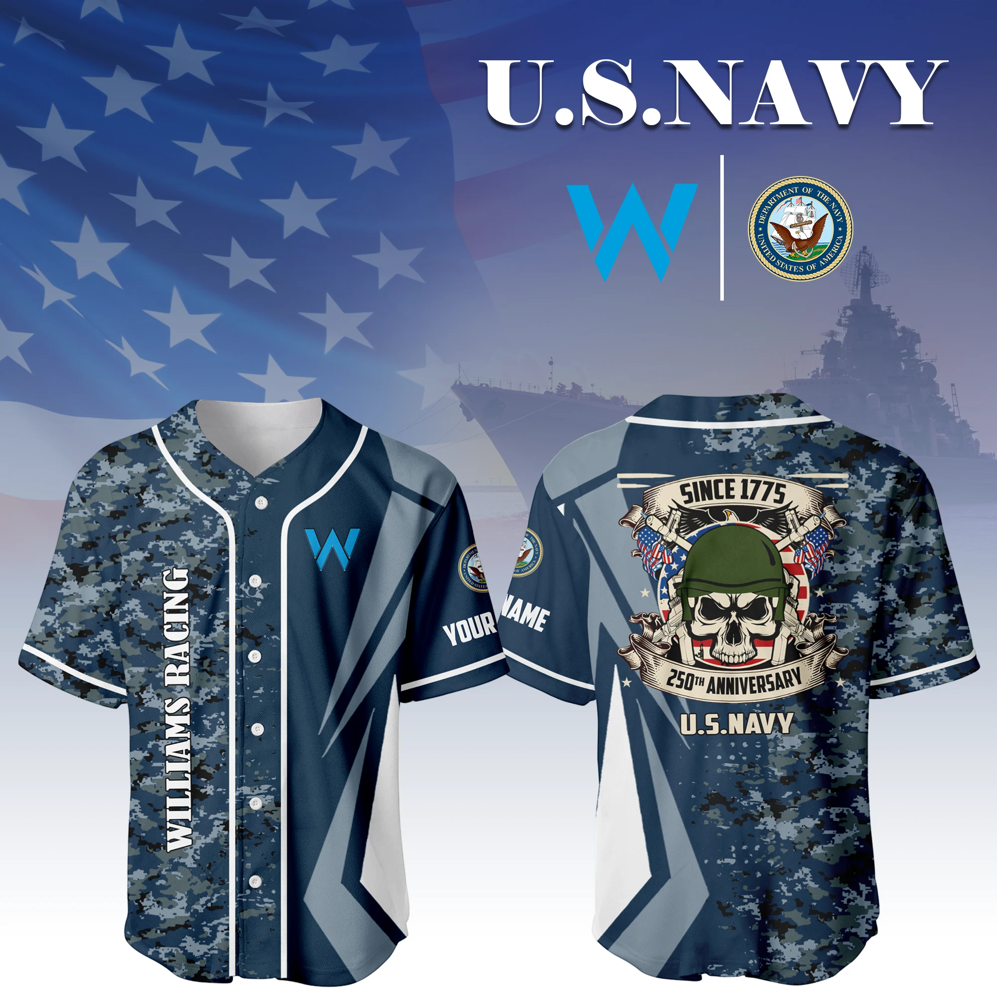 Williams Racing x US Navy 250th Anniversary 3D Baseball Jersey Custom Your Name